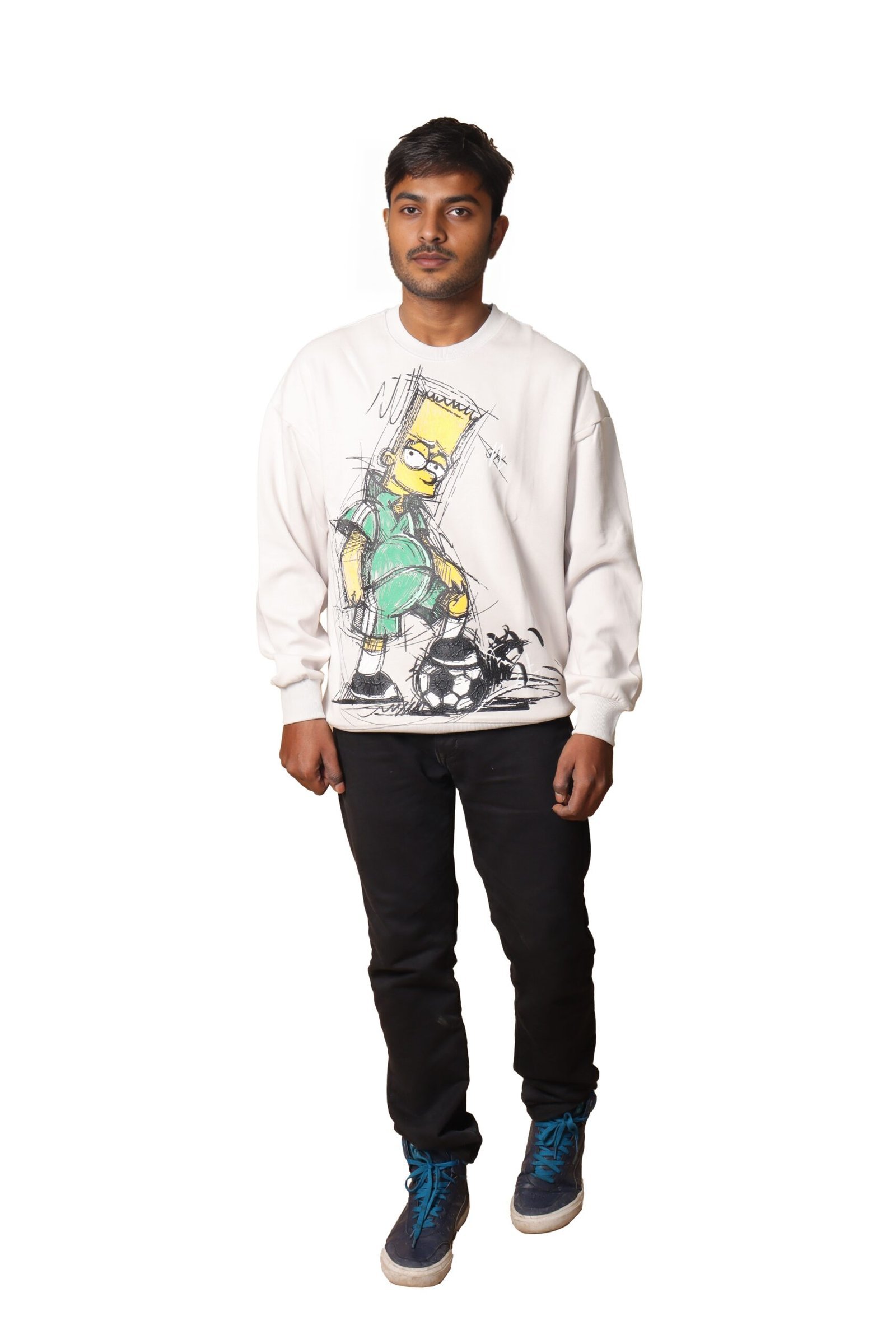 Add a quirky and playful vibe to your casual wardrobe with this sweatshirt featuring a creative graphic print of a soccer-themed Bart character. Ideal for fans of bold and iconic designs.