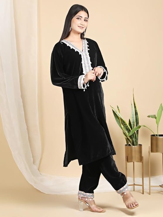 Women’s Velvet Winter kaftan Set. Crafted with premium velvet fabrics, this ensemble offers unparalleled comfort and style for the chilly winter months. The kaftan set features a flattering silhouette with intricate embroidery or prints, adding a touch of sophistication to your ethnic wear collection. Pair it with the matching pant bottoms for a coordinated and polished look. Whether you’re attending a festive occasion or simply seeking a cozy yet fashionable outfit for everyday wear, this kurti set is sure to elevate your winter wardrobe.