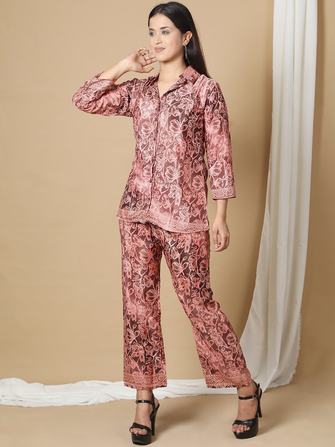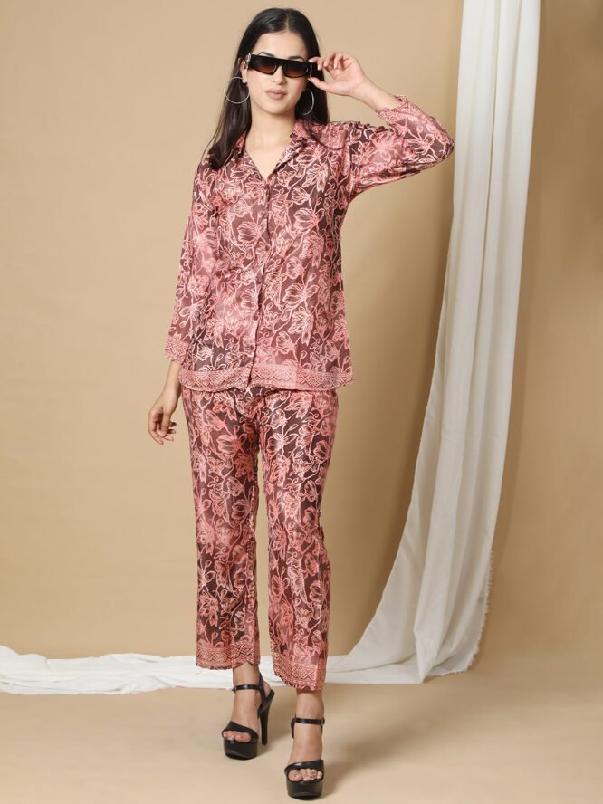 Elevate your style with this chic floral crepe co-ord set. Perfect for smart casual outings or cozy lounge sessions, its lightweight fabric and stunning print combine comfort and elegance effortlessly.
