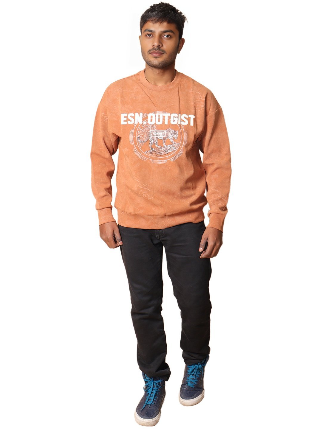 This sweatshirt boasts a washed rust finish, adding a touch of vintage charm to your wardrobe. The front showcases a bold “ESN OUTGIST” typography with an abstract graphic, blending modern aesthetics with rugged appeal. Made for comfort, the sweatshirt features a relaxed fit, crew neckline, and ribbed cuffs and hem for a polished finish. Pair it with jeans, chinos, or joggers for an effortless casual look.