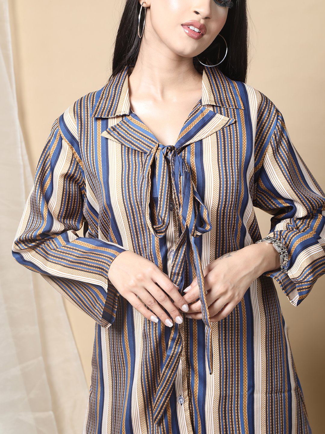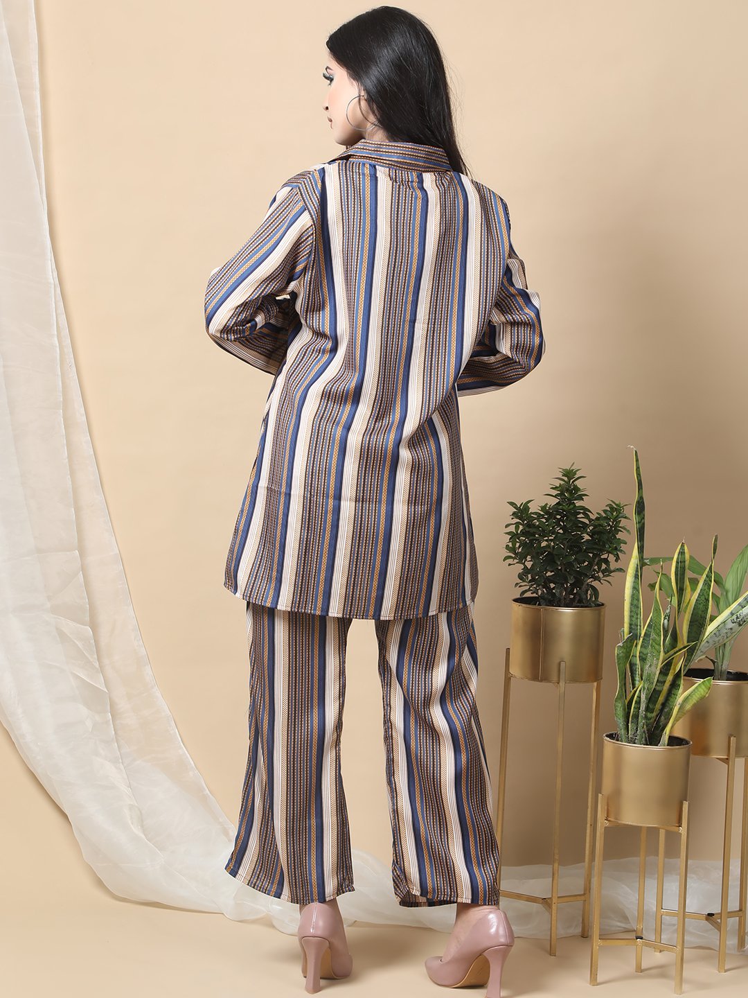 Chic Women’s Co-Ord Set – Printed Shirt & Striped Pants