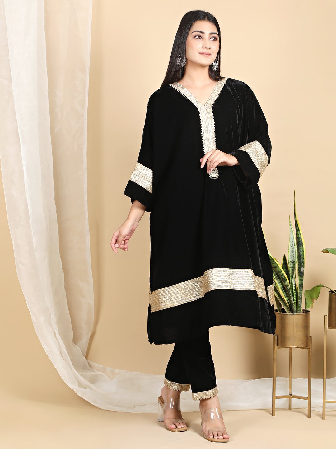 Women’s Velvet Winter kaftan Set. Crafted with premium velvet fabrics, this ensemble offers unparalleled comfort and style for the chilly winter months. The kaftan set features a flattering silhouette with intricate embroidery or prints, adding a touch of sophistication to your ethnic wear collection. Pair it with the matching pant bottoms for a coordinated and polished look. Whether you’re attending a festive occasion or simply seeking a cozy yet fashionable outfit for everyday wear, this kurti set is sure to elevate your winter wardrobe.